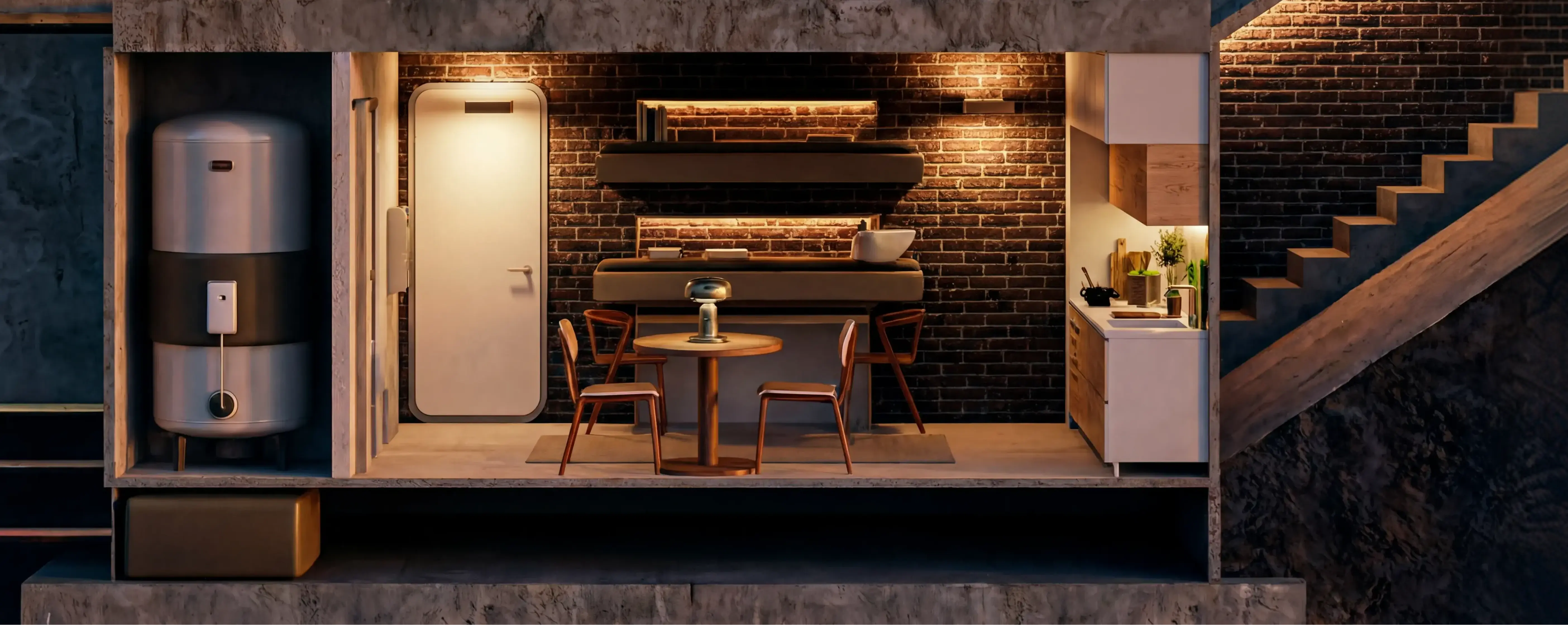 The shelter is delivered as a ready-made structure with pre-planned technical systems.